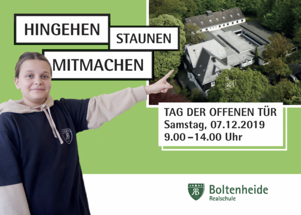 Am Samstag, den 07.12.2019 öffnete unsere Schule ihre Türen am „Tag der offenen Tür“ für interessierte Eltern und Schüler. Unsere Schülerinnen und Schüler zeigten anhand insgesamt 13 Mitmach-Aktionen von „Un jour en francais“ bis „Faszination Chemie und „Schlag den Sporthelfer!“ den Gästen die Ergebnisse ihrer Vorbereitungen. Grundschüler durften experimentieren, in die Welt der englischen Sprache…