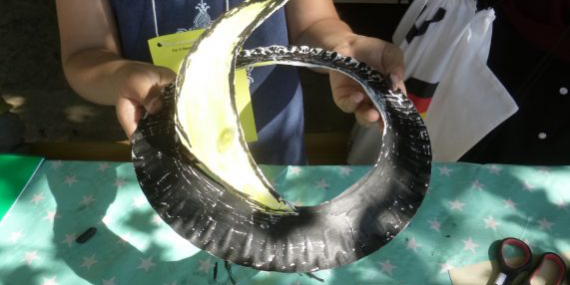 An unserem Stand konnten die Kinder alleine oder mit ihren Eltern Hüte aus Papptellern basteln. Dabei entstanden Prinzessinnen-Hüte, Blumen-Hüte, Herzchen-Hüte, Schleifchen-Hüte und Federn-Hüte, die gerne von Mädchen gebastelt wurden. Die Jungen gaben Piratenhüten den Vorzug. Mit Interesse beobachteten wir, wie bei allen, die an unseren Stand kamen, aus einem einfachen Pappteller die unterschiedlichsten Hutkreationen entstanden, die im Laufe des Tages auch getragen wurden.