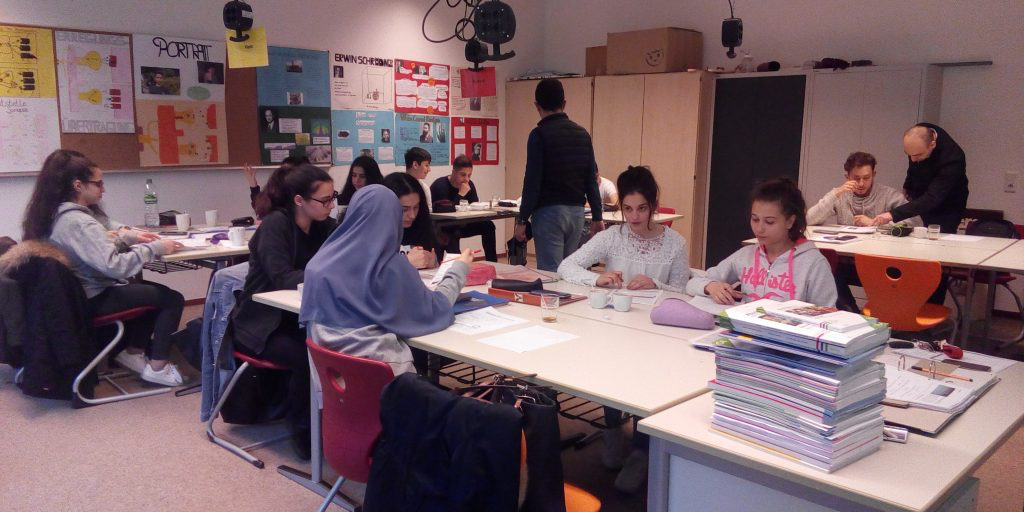 Für die Schülerinnen und Schüler der 10. Klasse beginnt eine aufregende Zeit: Die Abschlussprüfungen stehen an. Aber anders als in staatlichen Schulen müssen sie sich nicht alleine vorbereiten oder teure externe Nachhilfe in Anspruch nehmen: Wie in jedem Jahr wird auch nun wieder das Angebot der Lehrerinnen und Lehrer der Schule gut angenommen, für die Abschlussprüfungen unter ihrer Anleitung gemeinsam zu lernen. Jeden Tag in der ersten Osterferienwoche treffen sich alle Interessierten – und es sind fast alle Schülerinnen und Schüler der 10. Klassen anwesend – von 9.00 – 14.30 Uhr zum gemeinsamen Arbeiten. Fragen werden beantwortet, es wird gemeinsam an der Lösung von Aufgaben in den Fächern Deutsch, Englisch und Mathematik gearbeitet. Aber auch das Miteinander kommt nicht zu kurz: In den Pausen können alle Tee trinken und sie werden in der Mittagszeit verpflegt.