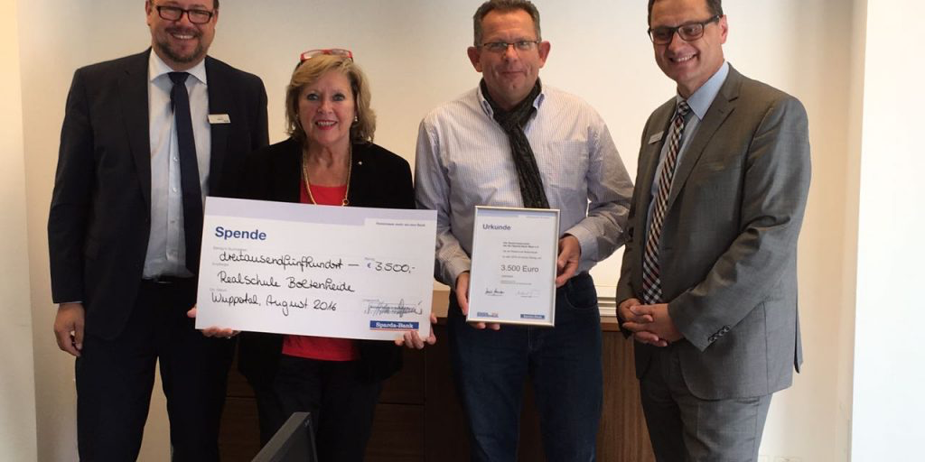 Swidbert Obermüller Vertriebsleiter der Sparda -Bank übergibt die Spende in Höhe von 3500 Euro an die Schulleiterin Inge Sassin. Einen herzlichen Dank an die Sparda – Bank für diese großzügige Spende in die Bildung.