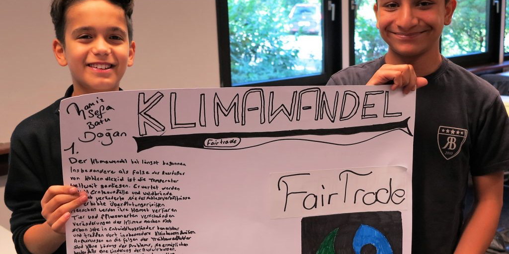 Fairtrade-Schools bietet Schulen die Möglichkeit, sich aktiv für eine bessere Welt einzusetzen und Verantwortung zu übernehmen. Mit dem Titel „Fairtrade-School“ haben acht Schüler repräsentativ für die gesamte Schule ihr Engagement nach außen getragen und ihren Freunden und ihrer Familie gezeigt, wie kreativ sie sich für den Fairen Handel an der Schule und im Schulumfeld einsetzen.